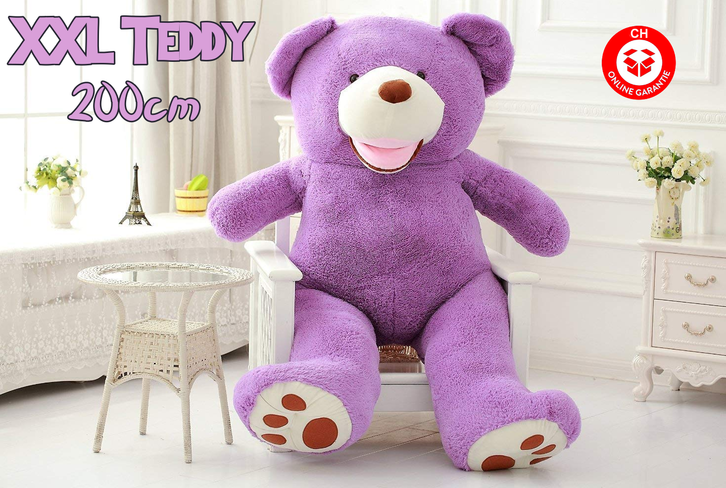 Dieser Kuschel XXL Bär in Lila-Farben hat alles, um dein bester Freund zu werden.