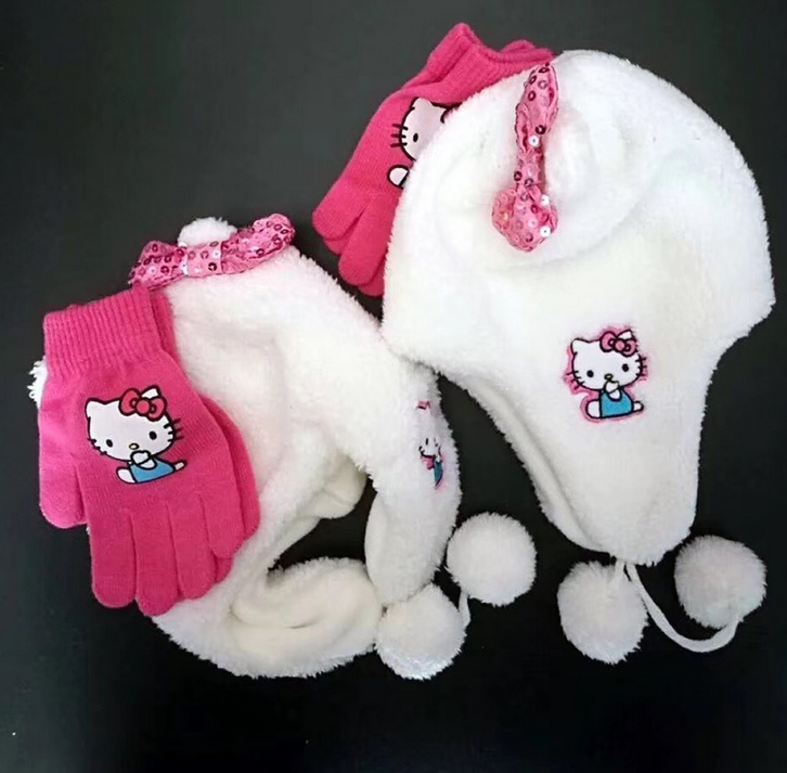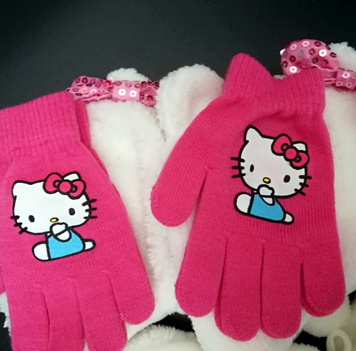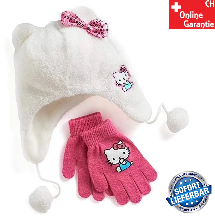 Die Hello Kitty Mütze und Handschuhe sind für die kalte Wintertage super geeignet. Einheitsgrösse für Kinder.